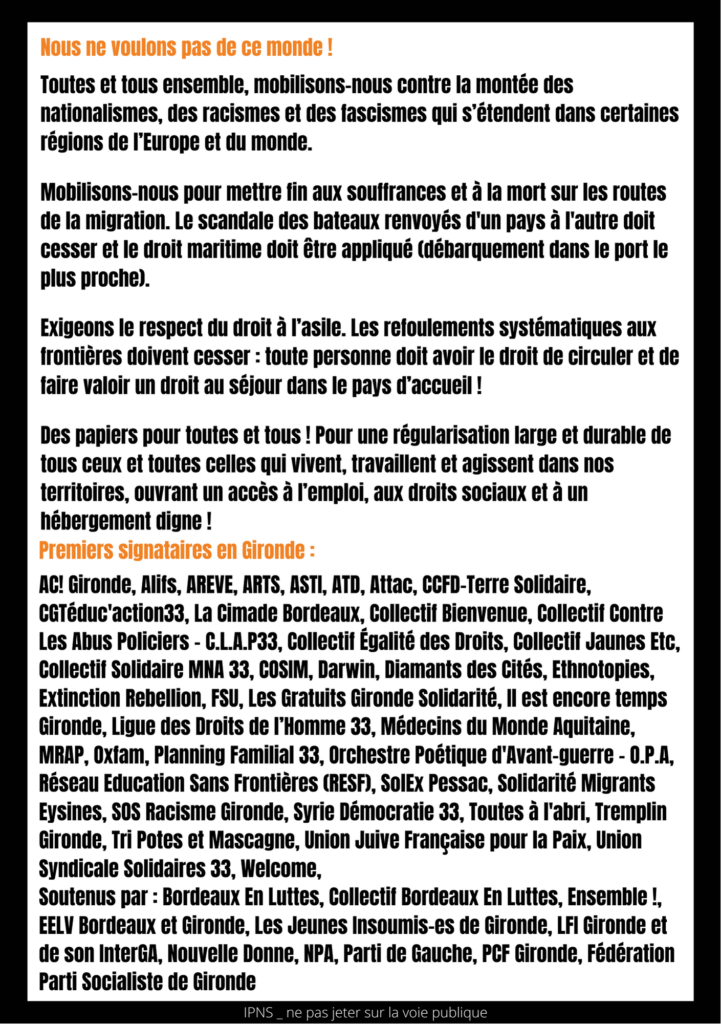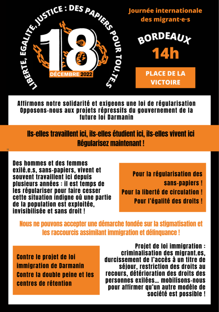 Journée internationale des Migrants : Dimanche 18 décembre 2022, 14h Place de la Victoire Bordeaux
