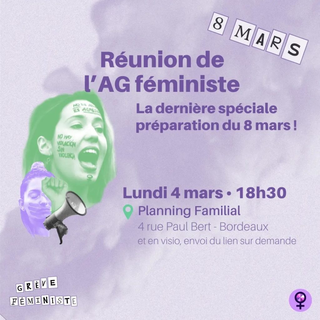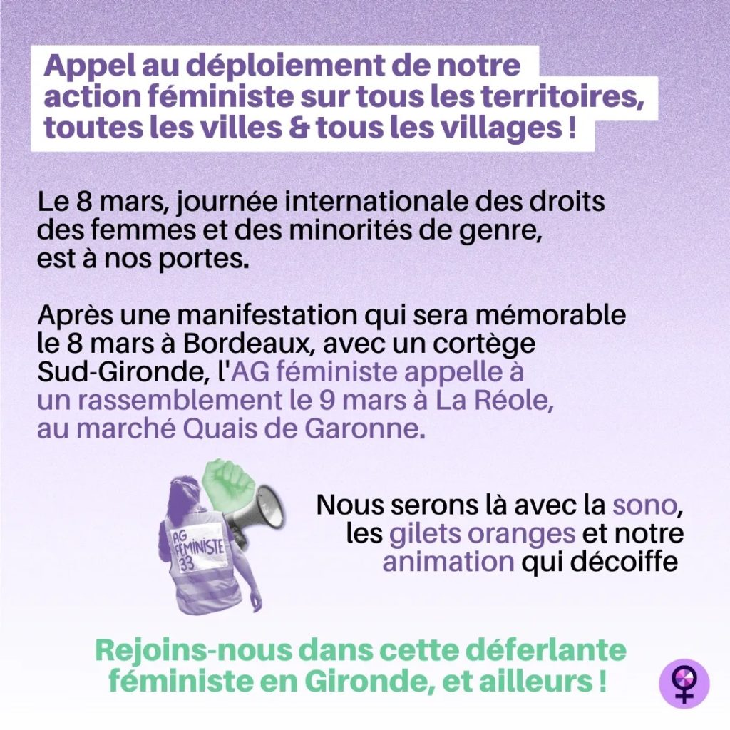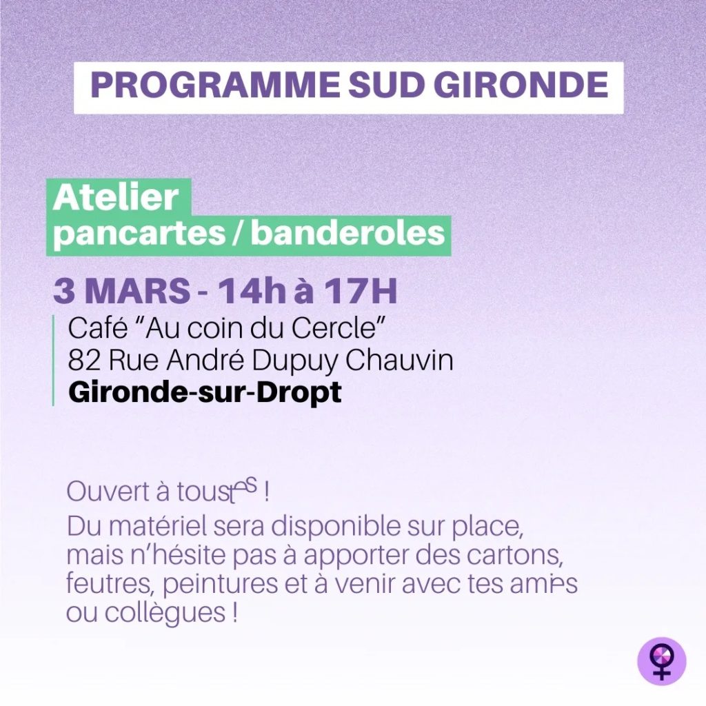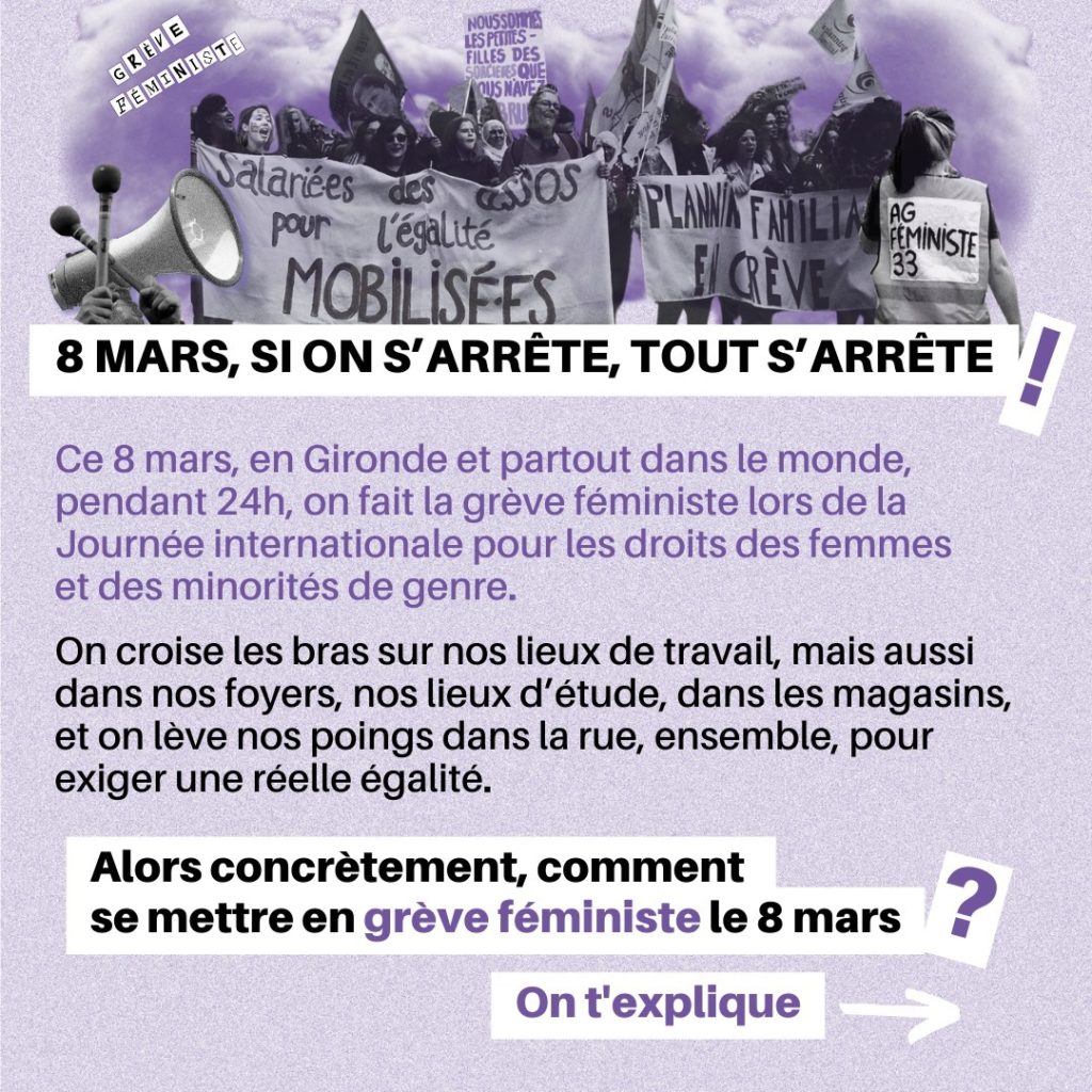 Posted in Appels et Pétitions, Dossiers, Evènement Grève féministe : 8 mars Manifestation 12h Place de la Victoire à Bordeaux Author: solidaires33 Published Date: 29 février 2024 J’aime ça :J’aime chargement…Partager Author: solidaires33blog de l'union syndicale Solidaires 33 8 rue de la Course 33000 Bordeaux Tél. : 05 56 90 89 33 mail : solidaires33@wanadoo.fr