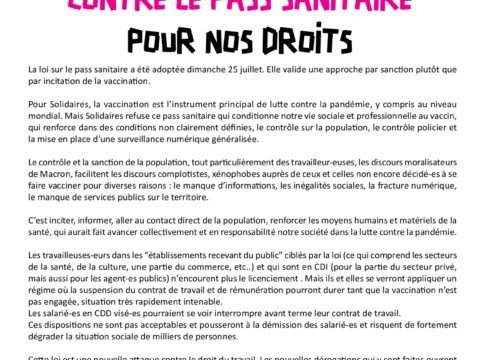 Mobilisons nous contre le pass sanitaire, pour nos droits