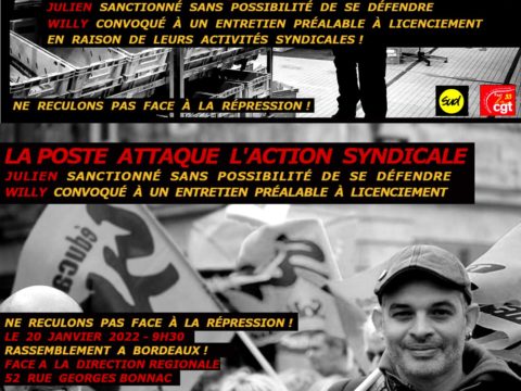 Solidarité contre la répression syndicale : rassemblement Jeudi 20 janvier 2022
